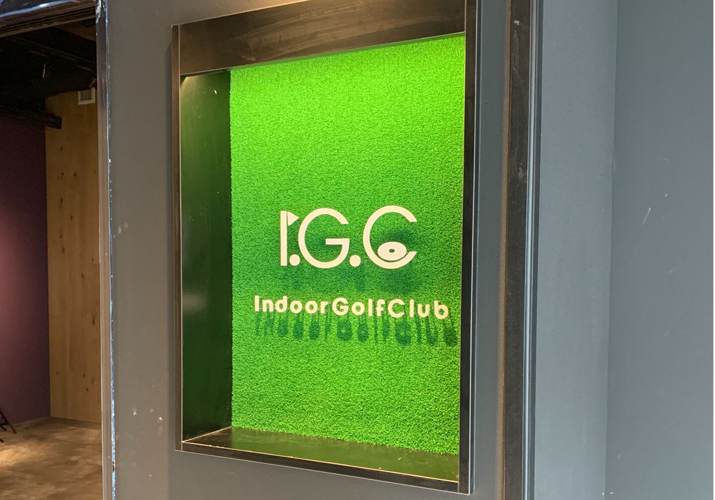 ベースに人工芝を貼り金属切文字を取り付けたサイン