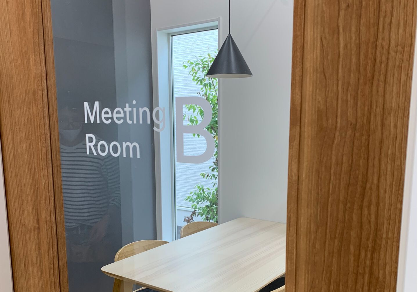 ガラスにカッティングシート文字を貼った